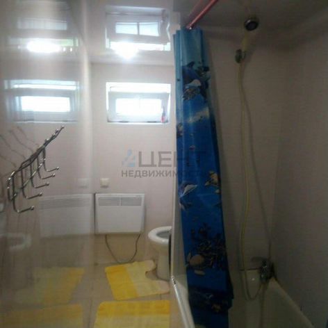 Санузел совмещенный, выполнен в светлых тонах.